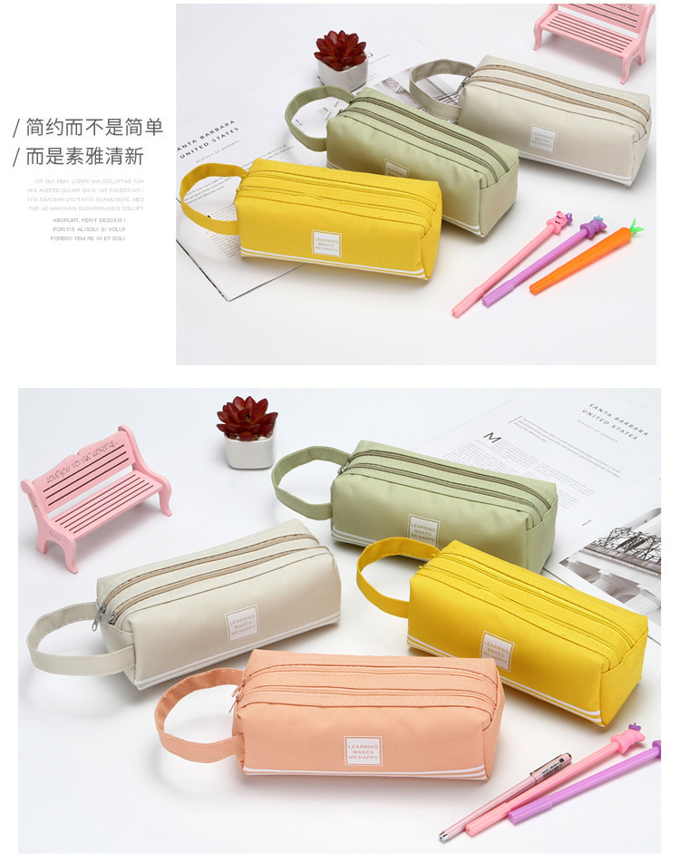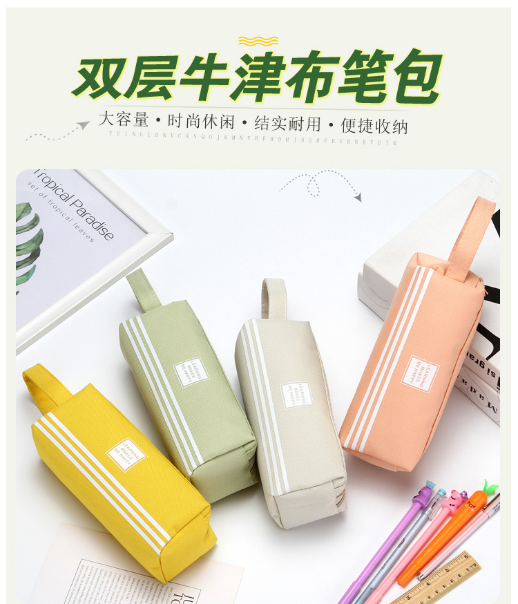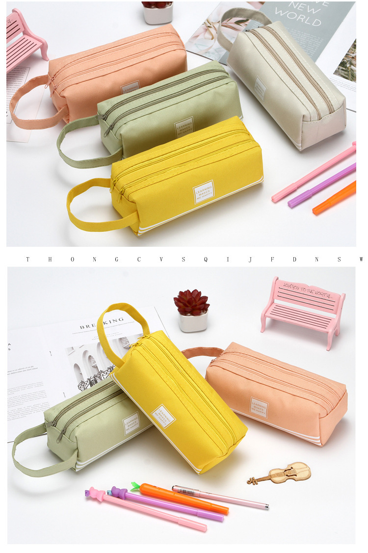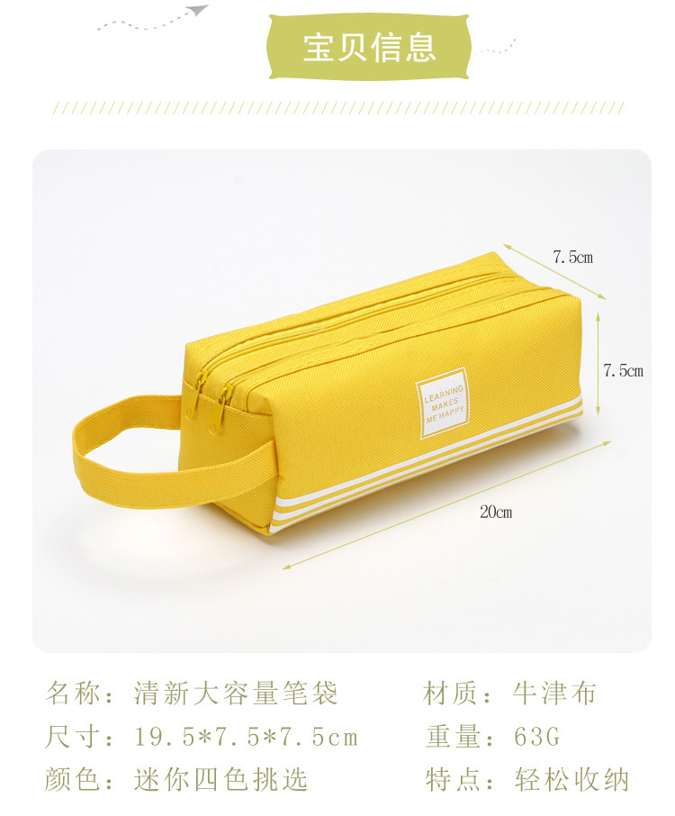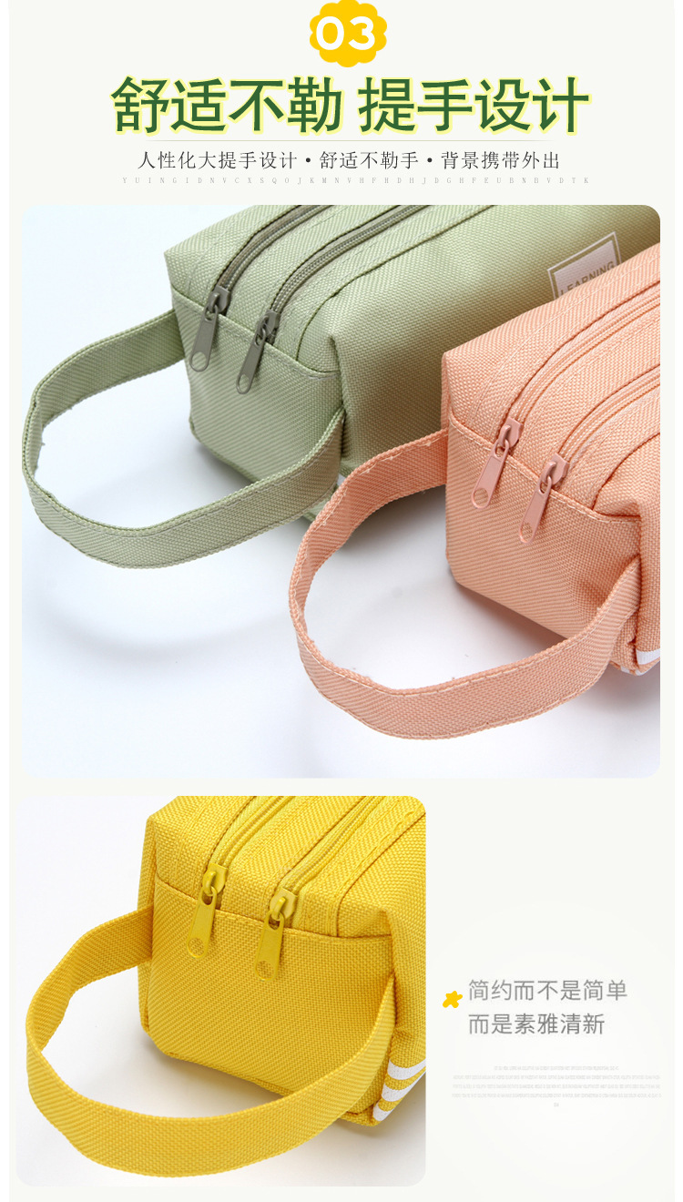 双层大容量手提笔袋简约牛津布双拉链笔袋纯色文具袋学生用品很简