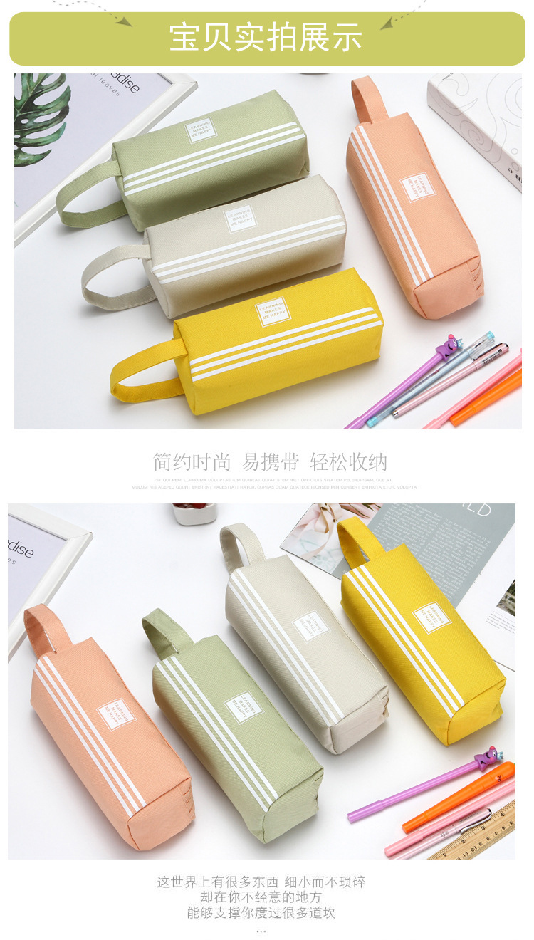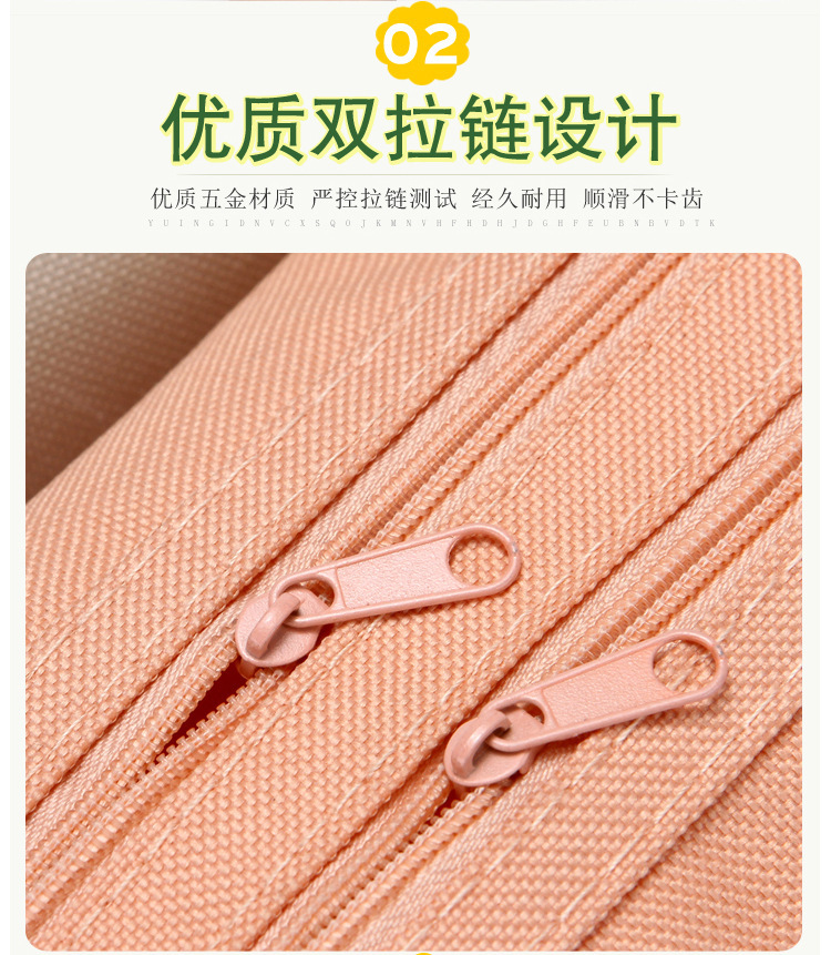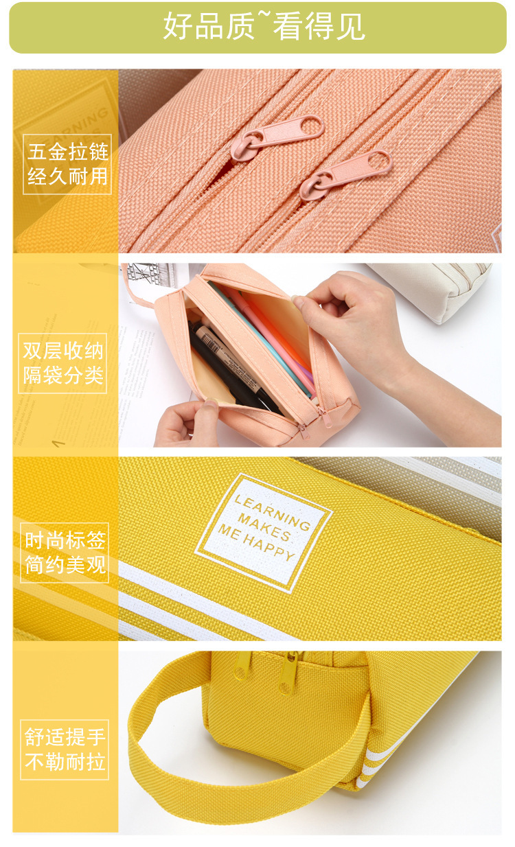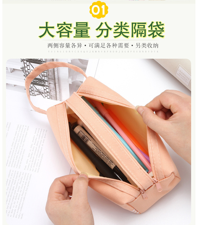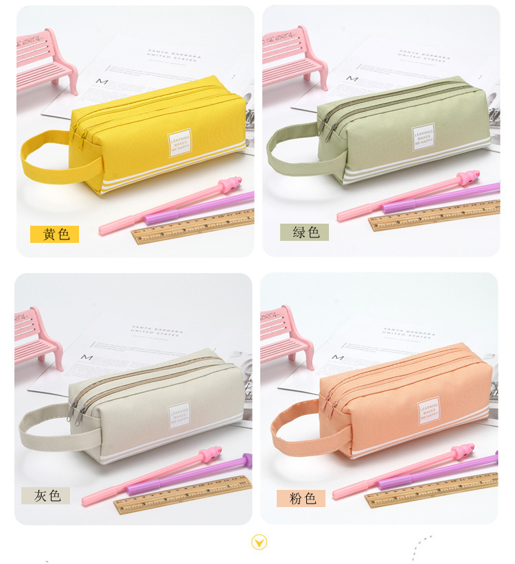 双层大容量手提笔袋简约牛津布双拉链笔袋纯色文具袋学生用品很简