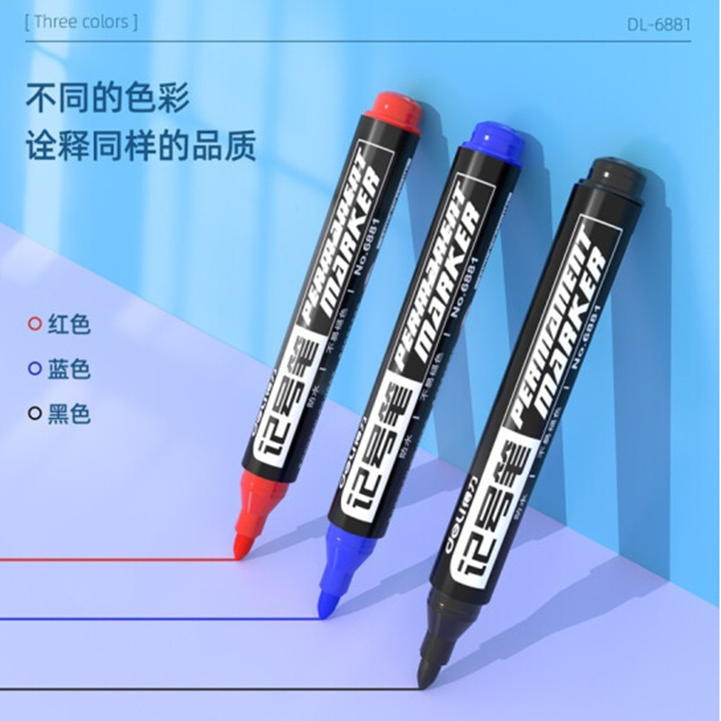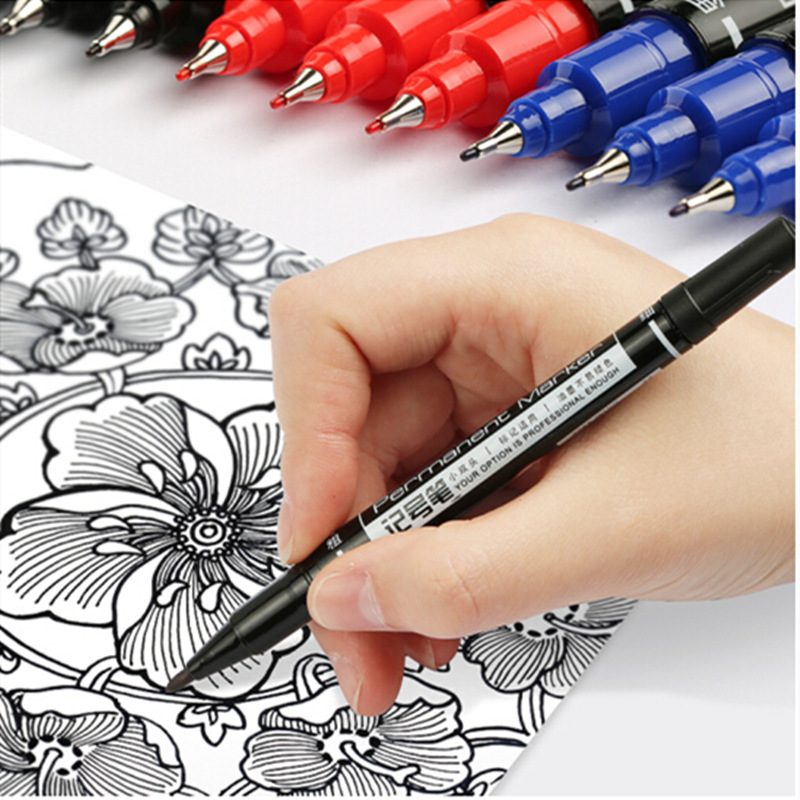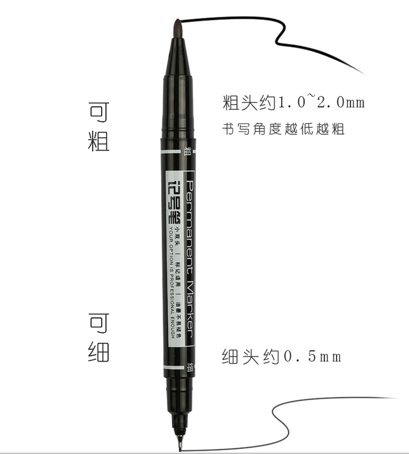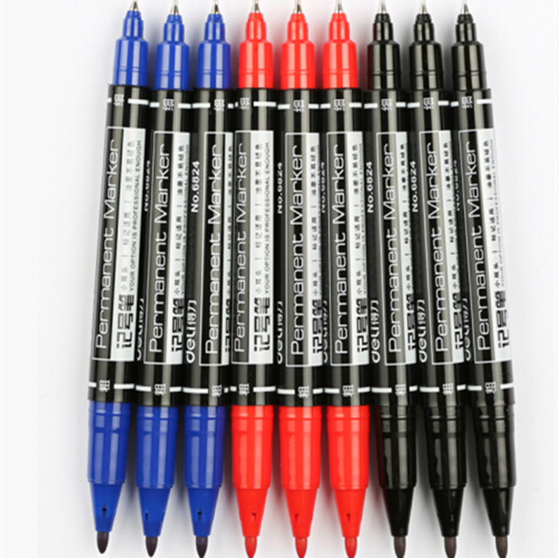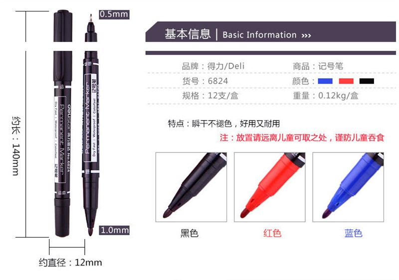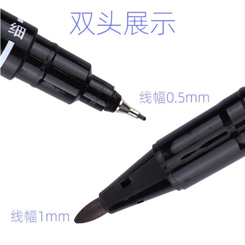 得力记号笔6824小双头美术勾线笔黑色油性速干不掉色标记笔描边笔
